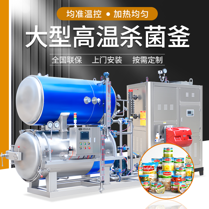 全自动蒸汽加热双层杀菌锅采用热水循环、侵泡式杀菌,通过在杀菌过程中,杀菌锅内的循环水呈上下左右不断切换保证了罐内从升温、保温到降温,任意一点的热分布均匀,浸泡式高温灭菌,在工作的过程当中高温杀菌锅心对锅内的温度压力、杀菌时间、进汽、排汽、进水排水等过程,设备全部采用电脑自动化控制。