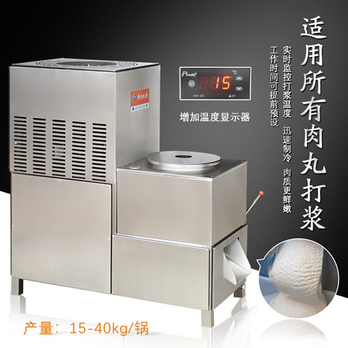 内置压缩制冷系统,打浆过程中持续降温,确保肉浆温度稳定在设置范围。温控感应自动停机报警系统防止过热影响肉质,保留肉品原始营养与口感,生产出的丸子外表光滑细腻、低脂爽脆、弹性十足。