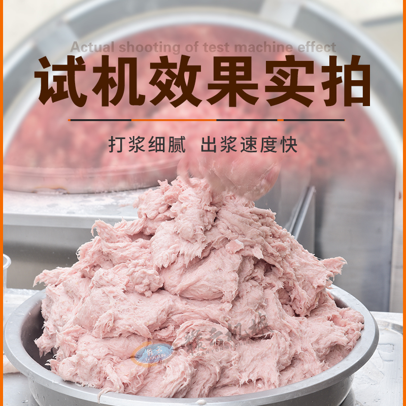 实际生产过程中,赣云打浆机表现出色。无论是纯肉浆还是混合浆料,都能在2-3分钟内完成细腻打浆,肉浆温度控制合理,确保肉质新鲜不发热。出料速度快捷,大大提高生产效率。