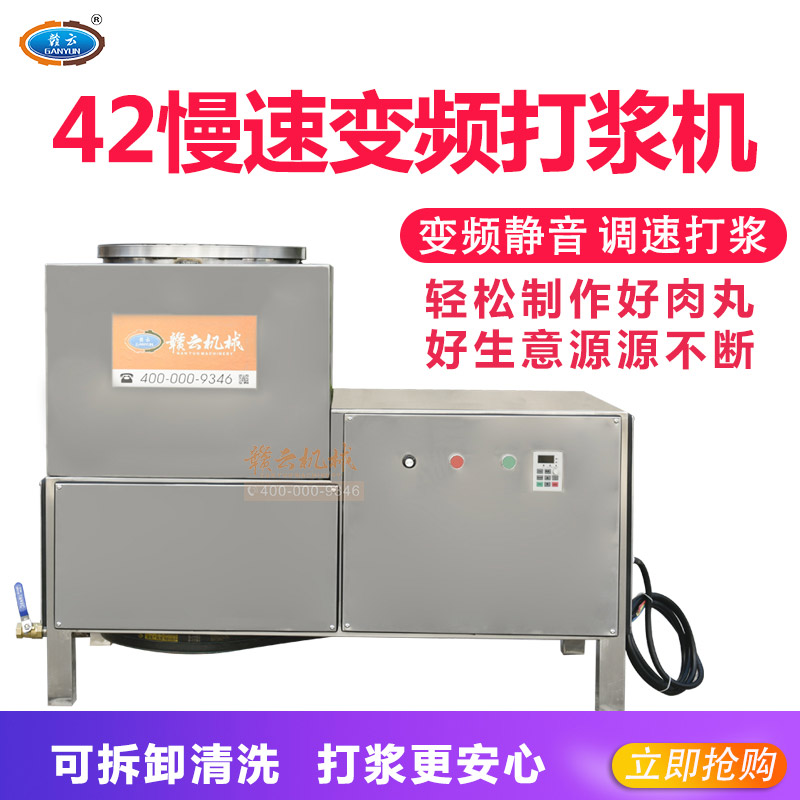 传统打浆机速度固定,面对不同肉质时效果差异大。赣云打浆机配备高精度变频调速器,操作人员可通过显示屏实时调节转速,实现慢速拍打功能。这种精准控制避免了靠感觉操作的弊端,确保牛肉、鱼肉、虾肉等不同食材都能达到所需打浆效果,肉质纤维得到充分改善而不被破坏。