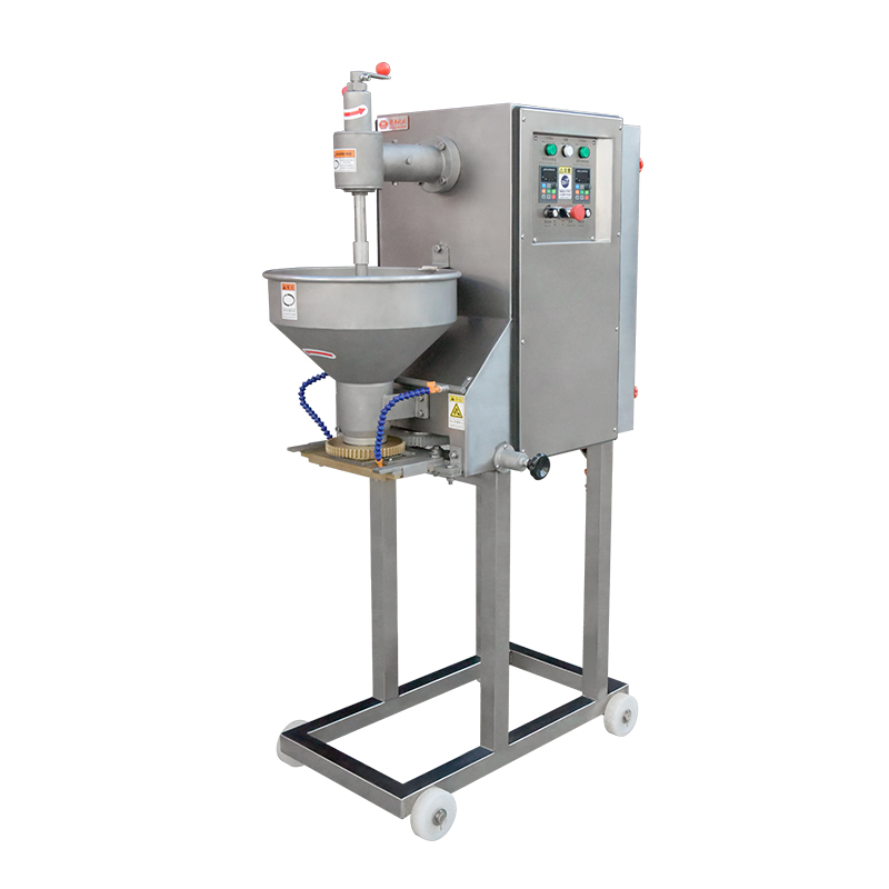 设备顶部配置大容量不锈钢下料斗,配合内置旋转绞龙装置,能够将肉浆均匀、连续地输送至成型区域,有效避免堵塞与空转现象,保证生产流程的连续性与稳定性。