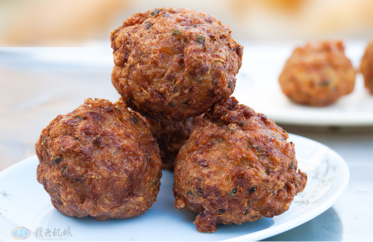 传统成型机制作的丸子容易出现密度不均、形状不规则等问题。赣云研发设计的摇摆成型机构,通过电机驱动成型头左右各摆动45度,在丸子成型过程中形成动态平衡。这种摆动使浆料在模具内均匀分布,切割后的丸子表面光滑无尾,内部结构紧密,口感更加Q弹有嚼劲,摇摆落入油炸槽后不易堆料导致粘连。适合制作直径40mm以上的大肉丸和狮子头。