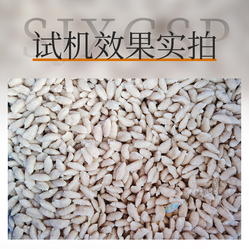 设备出厂前均经过严格测试,成型效果实拍展示:成品颗粒饱满、表面光滑、弹性十足,口感好。