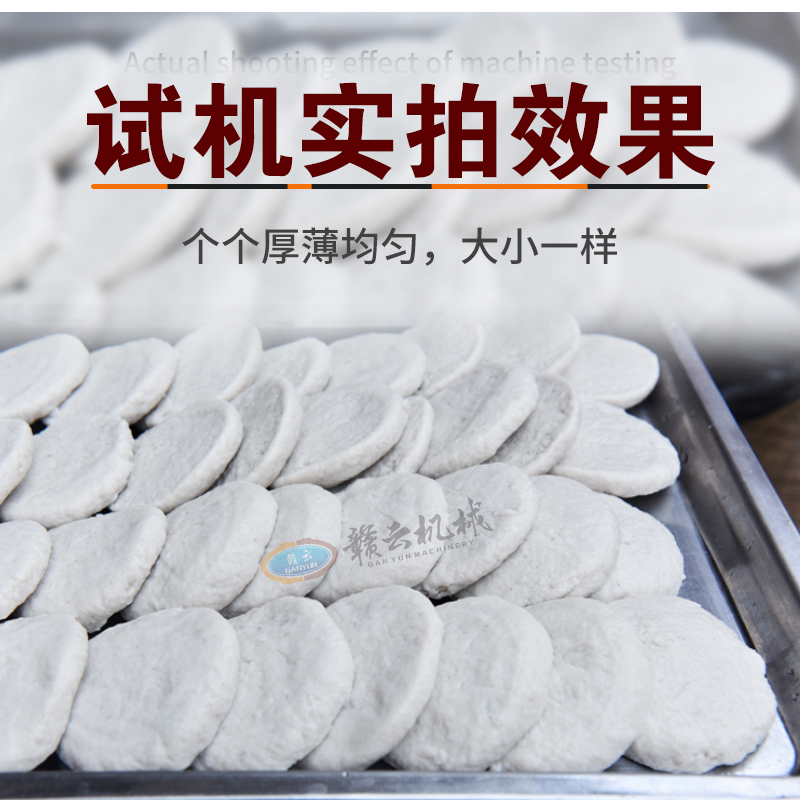 赣云GY-YBX-500型鱼饼成型线是一款专为食品加工企业、餐饮店及个体户设计的多功能成型设备。该机器集自动供料、压饼成型、输送输出于一体,可高效制作鱼饼、肉饼、南瓜饼、年糕饼等各类圆形饼状食品。采用食品级不锈钢材质打造,符合食品安全卫生标准,具有操作简单、清洗方便、厚薄均匀、产量稳定等特点,是提升生产效率、降低人工成本的可靠选择。