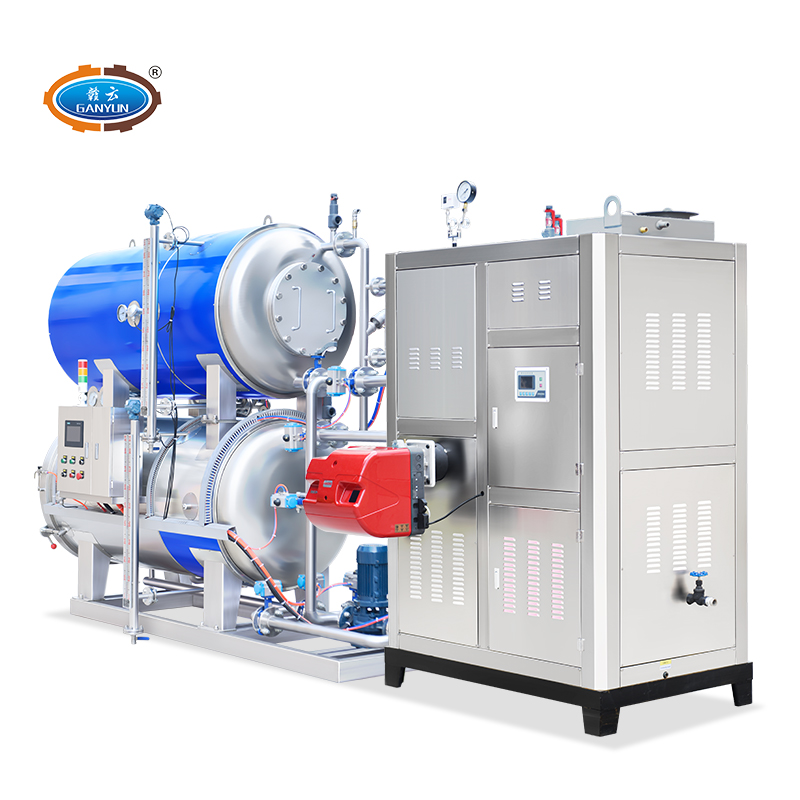 全自动蒸汽加热双层杀菌锅采用热水循环、侵泡式杀菌,通过在杀菌过程中,杀菌锅内的循环水呈上下左右不断切换保证了罐内从升温、保温到降温,任意一点的热分布均匀,浸泡式高温灭菌,在工作的过程当中高温杀菌锅心对锅内的温度压力、杀菌时间、进汽、排汽、进水排水等过程,设备全部采用电脑自动化控制。