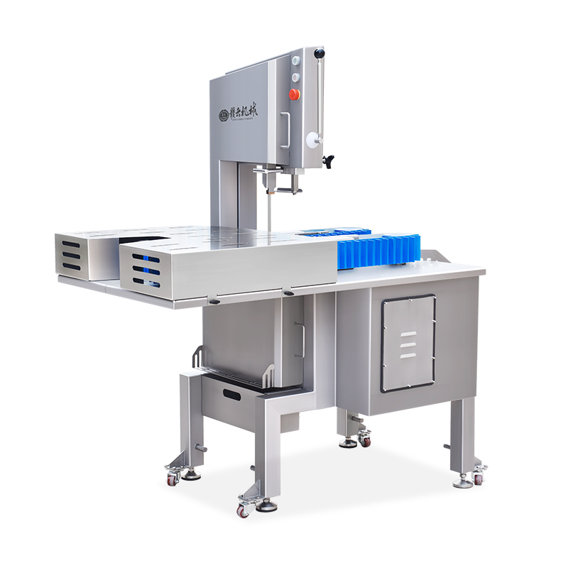 自动猪蹄分半机采用锯条高速运转,在通过食品级输送带将猪蹄进行切割,主要是对猪蹄分割设备,能将猪蹄、羊蹄、牛蹄等快速分割为两瓣,生产效率高,速度快,可直接对冷冻猪脚和新鲜猪蹄加工。猪蹄分半机的视频、图片、价格