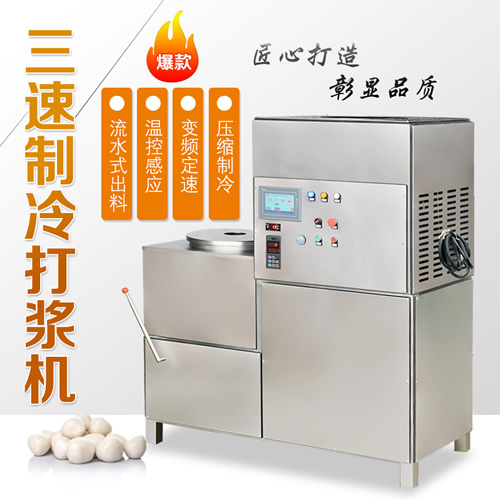 内置压缩制冷系统,打浆过程中持续降温,确保肉浆温度稳定在设置范围。温控感应自动停机报警系统防止过热影响肉质,保留肉品原始营养与口感,生产出的丸子外表光滑细腻、低脂爽脆、弹性十足。