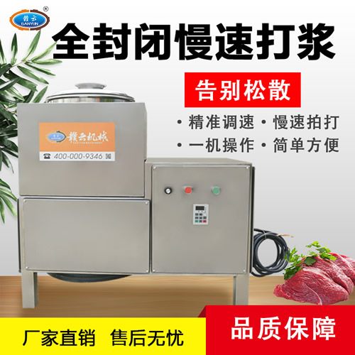 赣云机械GY-MQ-36BP慢速打浆机是专为肉丸加工行业设计的商用厨房设备,采用全封闭慢速拍打技术,模拟手工捶打原理,使肉质更加细腻有弹性。该机型配备加厚不锈钢桶身和强劲纯铜电机,满足不同场所用电需求。独特的冷水桶夹层设计可在打浆过程中加入冰块或冷水,有效防止肉质熟化,确保肉丸口感爽脆Q弹。变频调速功能可根据不同肉类和工艺要求灵活调节速度,适用于制作潮州牛肉丸、鱼丸、福州鱼丸、狮子头、贡丸等多种肉丸产品,是饭店、肉丸店及食品加工企业的常见选择。