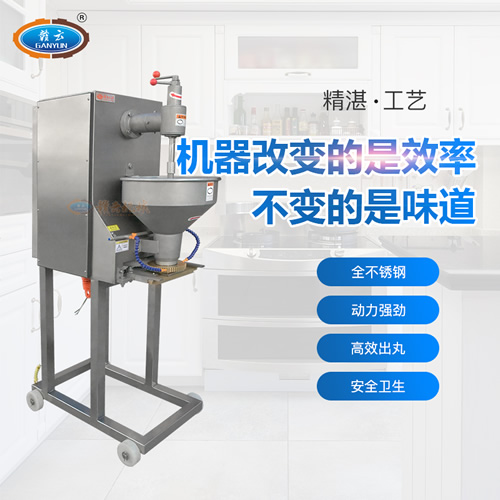 赣云GY-SZT-190BP变频成型机是一款专为肉制品加工厂、中央厨房及大型餐饮企业设计的高效肉丸生产设备。该机型采用双电机驱动系统,配备纯铜电机与优质齿轮,动力强劲且运行稳定。通过变频控制技术,可精准调节成型速度与下料压力,轻松制作大直径的大肉丸、狮子头等产品。设备采用加厚不锈钢材质,符合食品安全标准,搭配大容量下料斗与旋转绞龙设计,送料均匀不堵塞,有效提升生产效率。